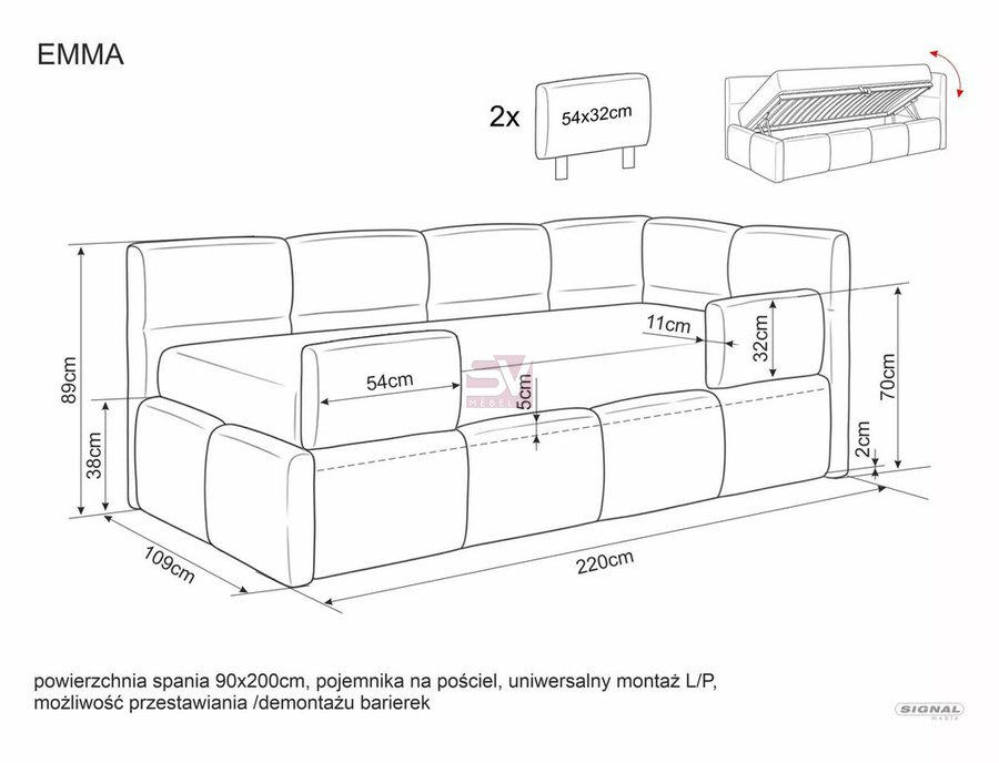 Спальное место: 90x200